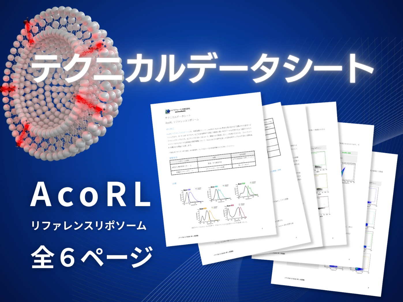 AcoRLは、合成脂質にAcoerela色素を 1 mol% の割合で配合した蛍光リポソームです。
