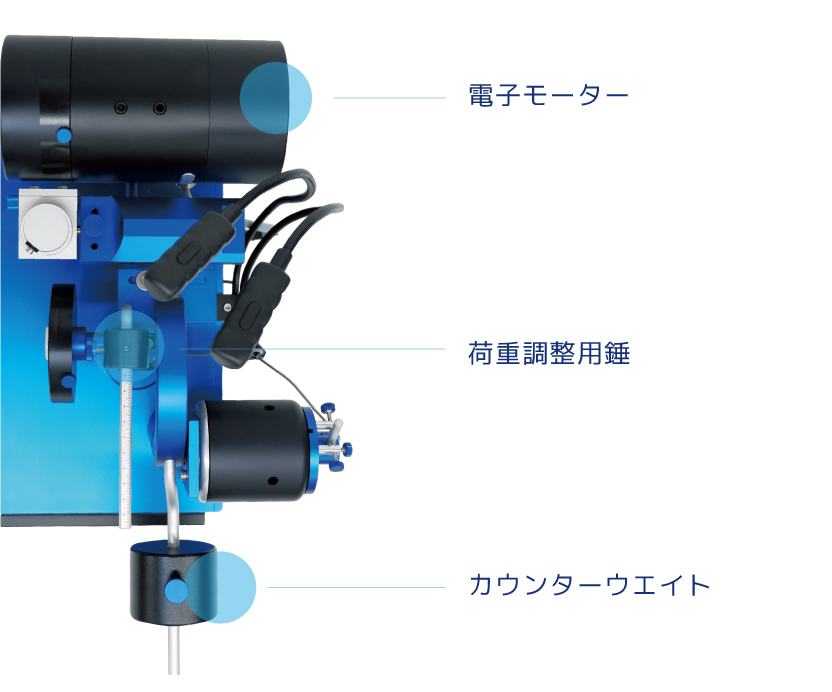 試料とカウンターウエイトでバランスを取り、試料に荷重がかからないように調整します。