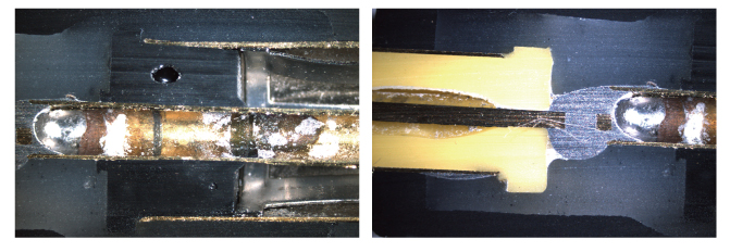 ゲル状封止樹脂の部分や微細配線も変形させることなく切断ができます。