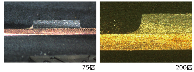また、切断によるダレが生じやすい銅も鮮明な界面を得ることができます。