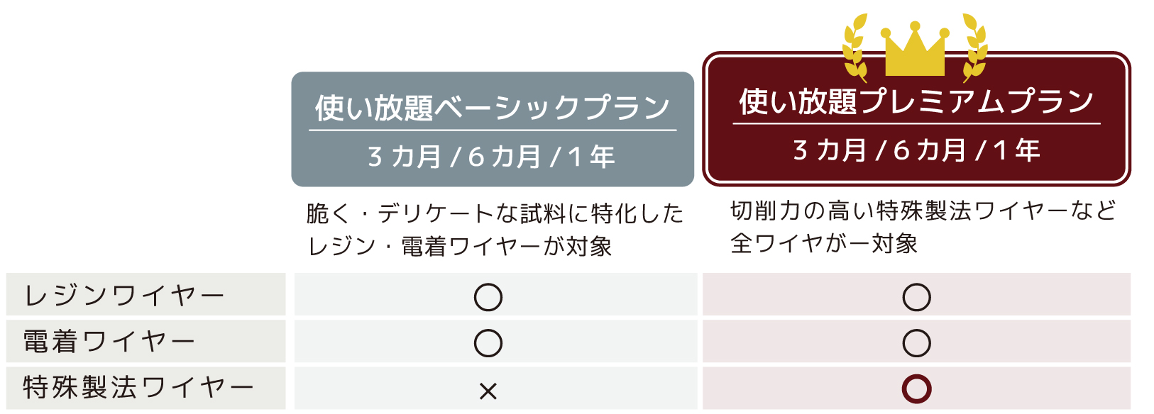※ワイヤー使い放題の対象は、新電着式ワイヤー、新レジン式ワイヤーに限ります。