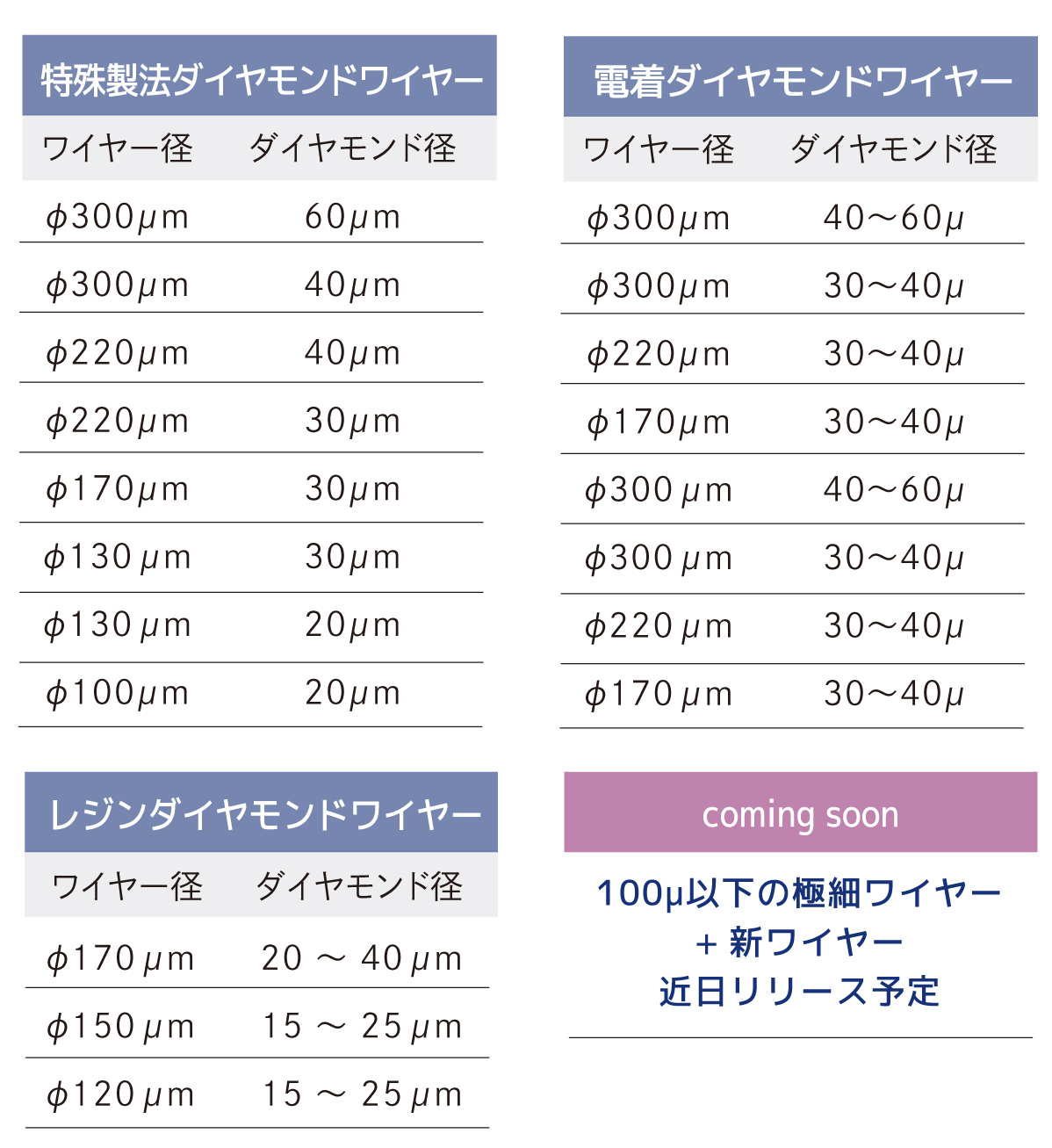 一般的なワイヤーと比べ、硬質試料の切断や長時間の切断においてダイヤモンド粒子が欠落しにくい特徴があります。