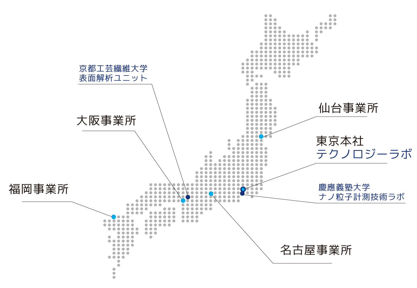 メイワフォーシスでは、お客様へ迅速かつ直接的なサポートができるよう、全国主要都市に事業所を設置しております。