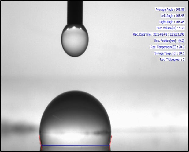 撥水処理を施したガラスは疎水性を示し、未処理ガラスより大きな接触角を示しました。