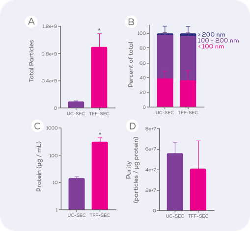 UC-SEC と TTF-SEC を使用して分離されたEV粒子とタンパク質成分比較